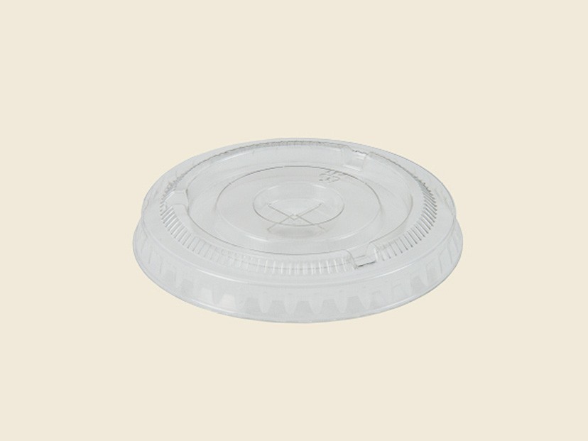 PETカップ9オンス専用の蓋です。透明度の高い高品質PETの十字のストロー穴が開いた平蓋です。