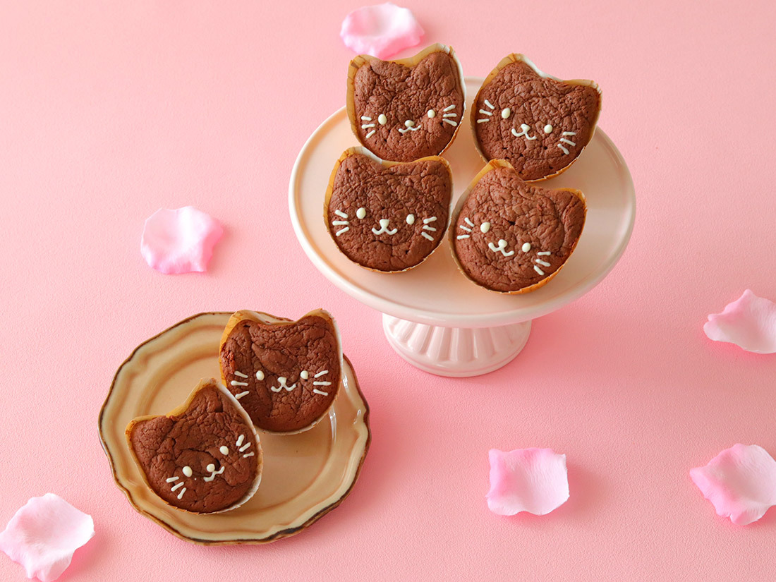 cotta手作りキットです。バレンタインねこガトーショコラが6個作れます。ラッピング付き。【セット内容】ガトーショコラミックス、クーベルチュールチョコ、チョコペン(ホワイト)、ベーキングカップ、ラッピング用袋6枚、ヘッダーシール、動画付レシピカード