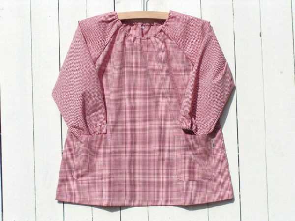 T/Cギンガムチェックでつくった長袖子供スモックです。