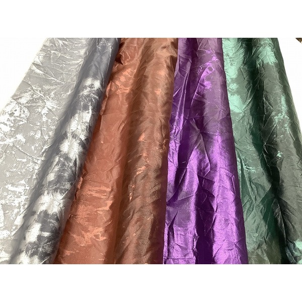 ●品質:ポリエステル100% ●生地幅:約110cm ●薄手(透け感あり) 〇ムラ染のラメが面白い生地。ワッシャー加工で表情が変わります。