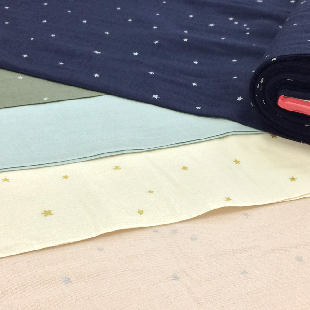 まるで星空のようなかわいい星のプリントのダブルガーゼ生地。