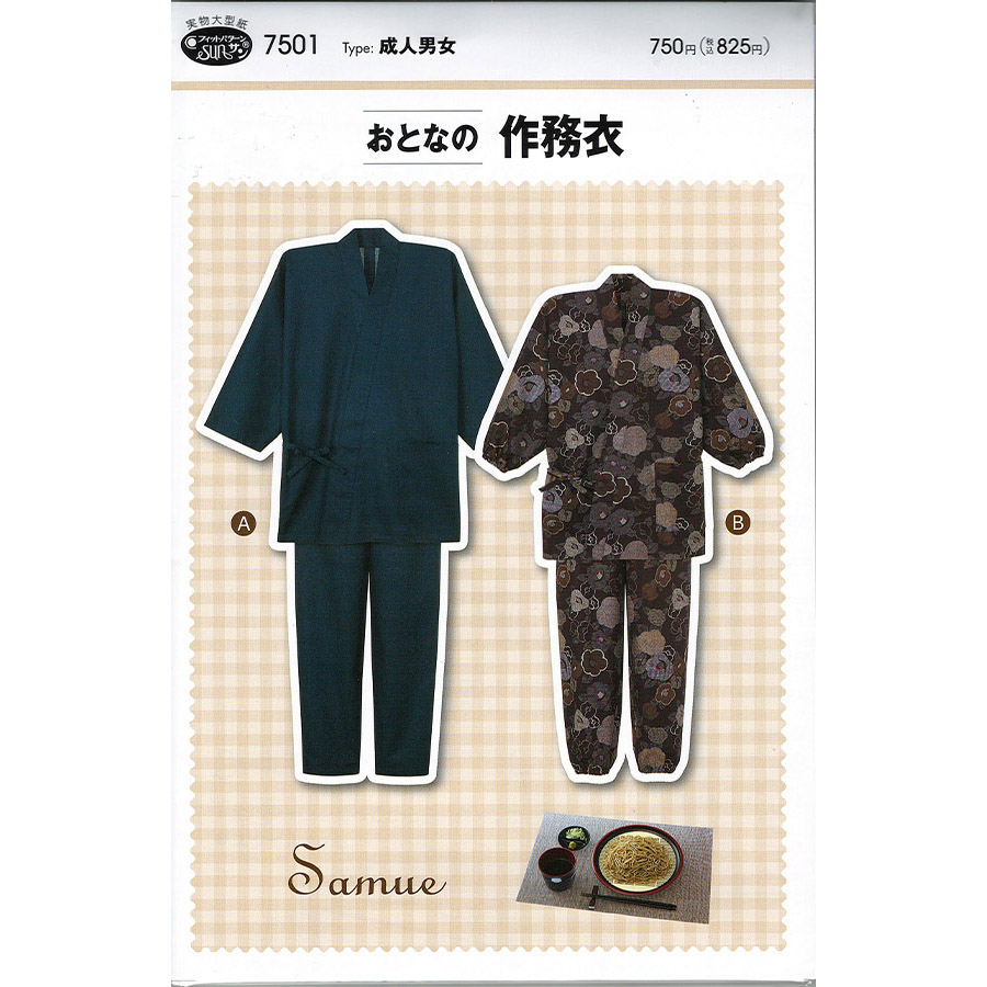 実物大 型紙 おとなの作務衣 成人男女 さむえ 大人 メール便可