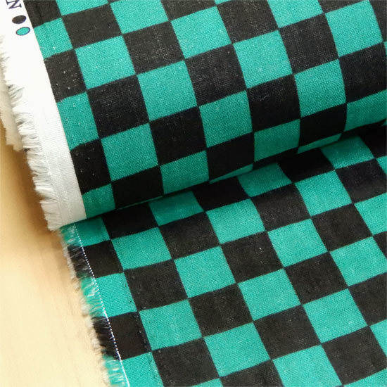生地 鬼滅の刃風 ダブルガーゼ 和柄 市松格子 かまど市松 緑 黒 綿 布 110cm幅 商用利用可 メール便1.5m迄 爆買