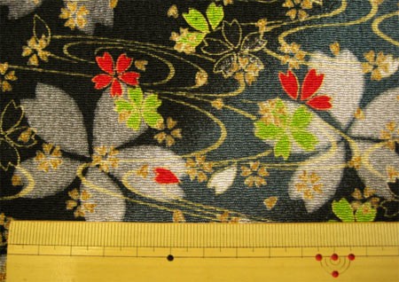 桜 生地 ちりめん 和柄 金彩 縮緬生地 切り売り 布 流水と桜(黒)レーヨン 50cm以上10cm単位 約70cm幅 メール便2mまで 爆買