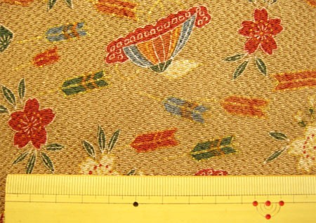 桜柄 生地 ちりめん 和柄 金彩 縮緬生地 切り売り 布 宝づくしに矢羽根と桜 レーヨン 50cm以上10cm単位 約70cm幅 メール便2mまで 生地屋