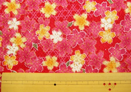 桜柄 ちりめん生地 和柄 金彩 縮緬生地 切り売り 布 桜と籠目(赤)レーヨン 50cm以上10cm単位 約70cm幅 メール便2mまで 爆買