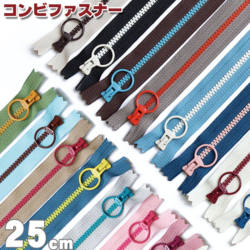 リングスライダーが付いた2色使いのビスロンファスナー。