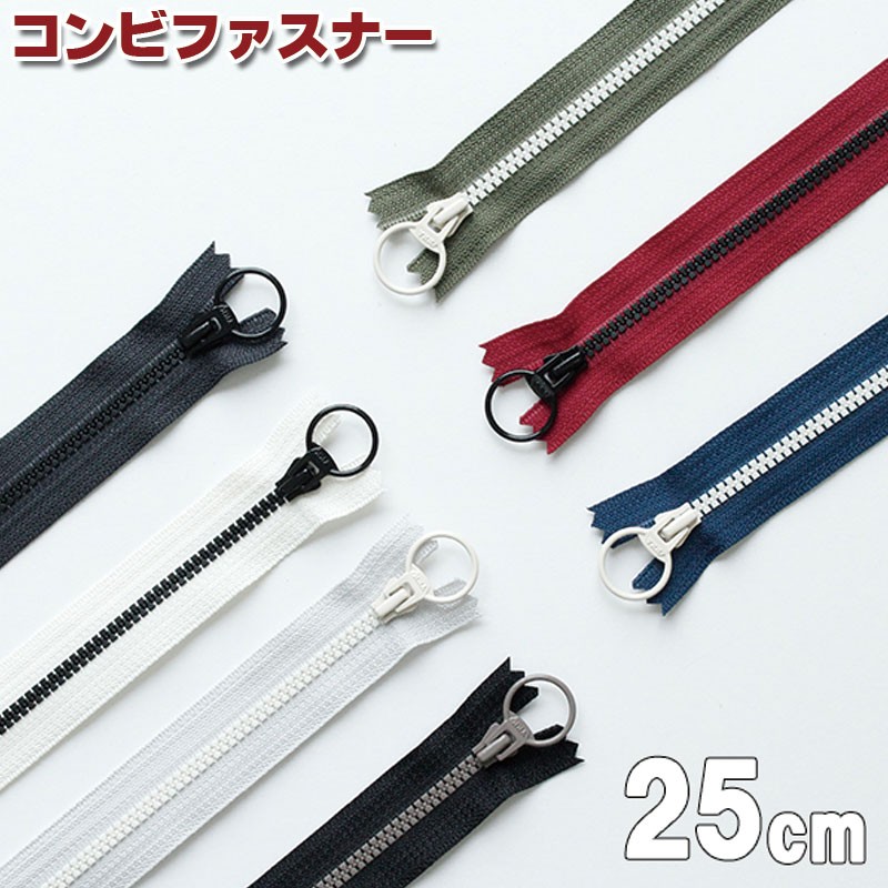 リングスライダーが付いた2色使いのビスロンファスナー。