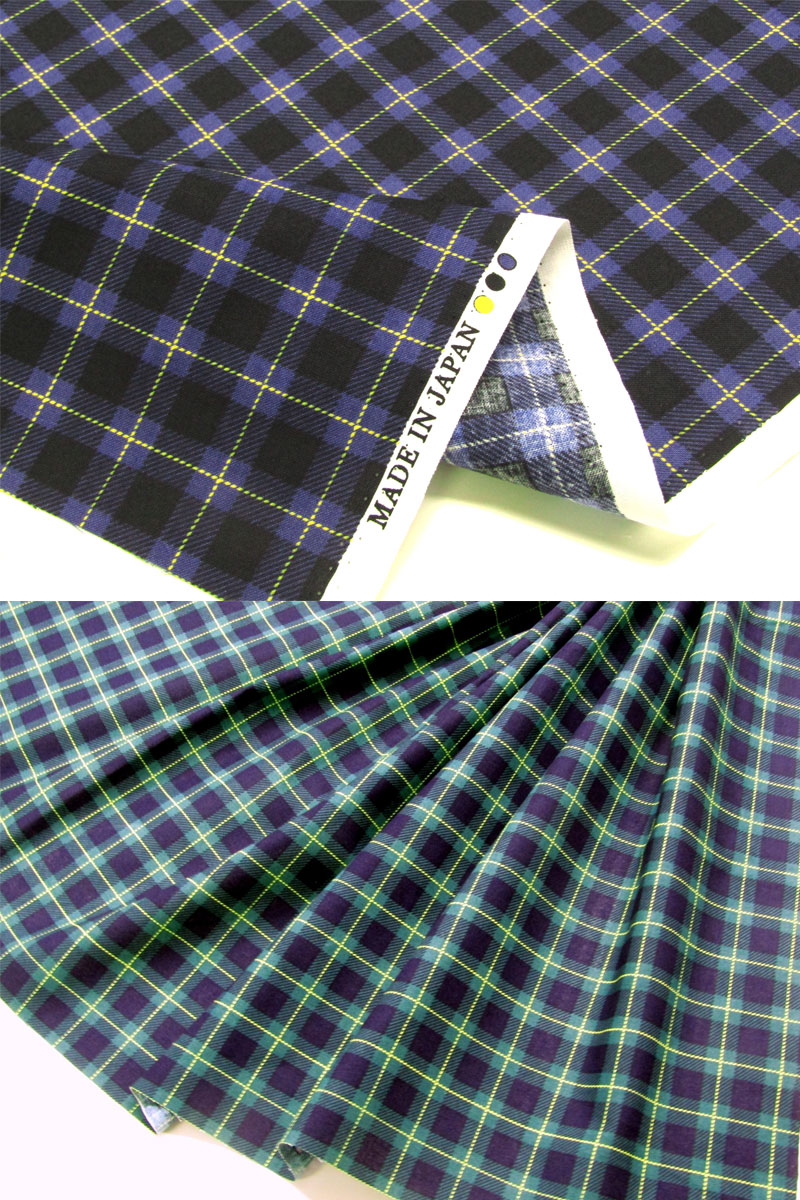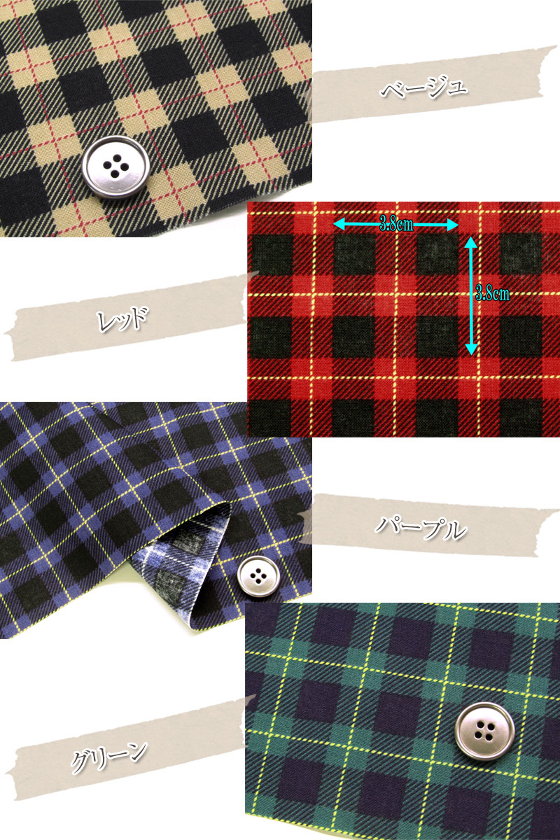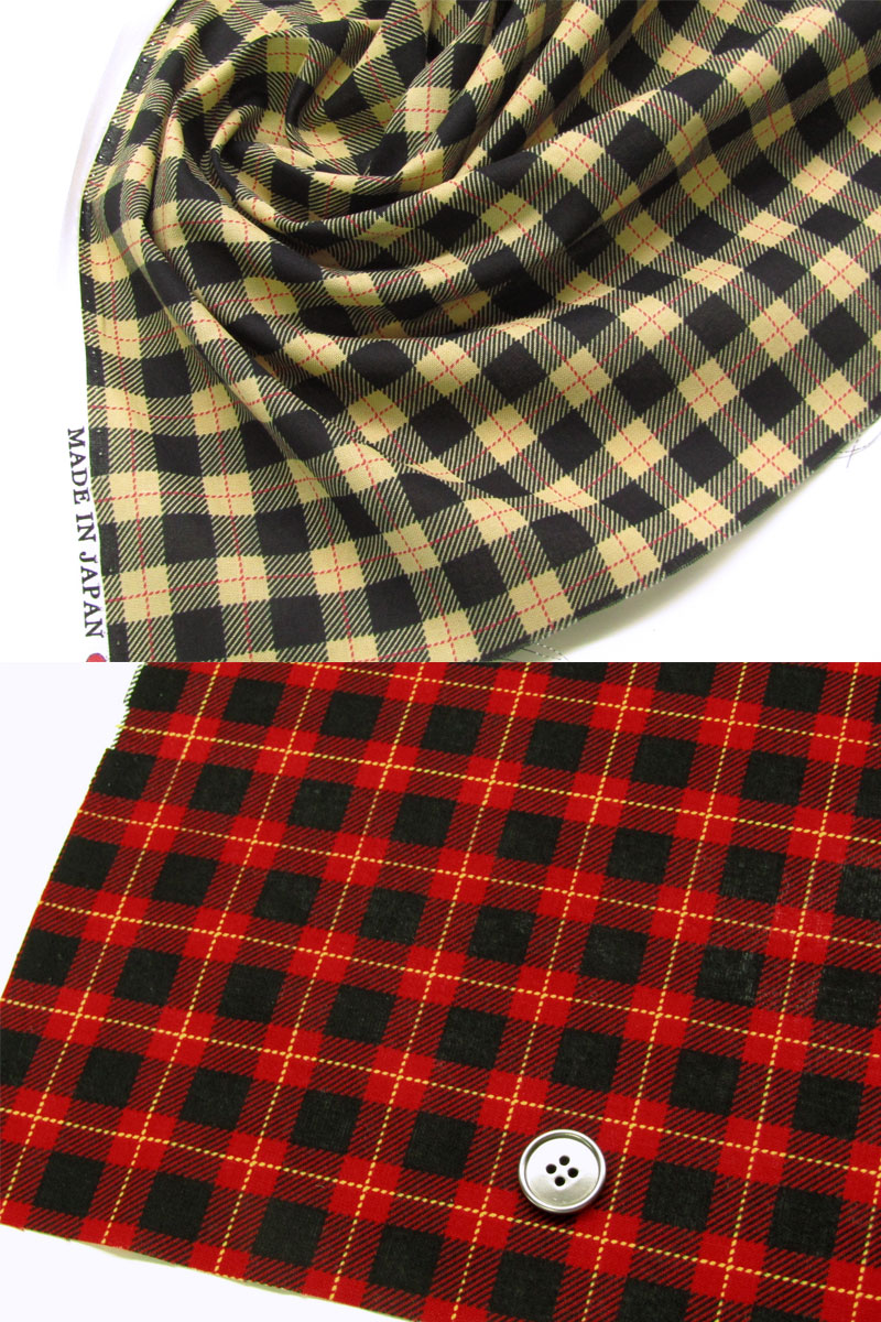 ブロックチェックとウインドウペンチェックを重ねたようなデザインのミディアムタータンプリント。ベースカラー×濃色+アクセントカラーのラインが組み合わされた大人カジュアルな印象のチェック柄です。