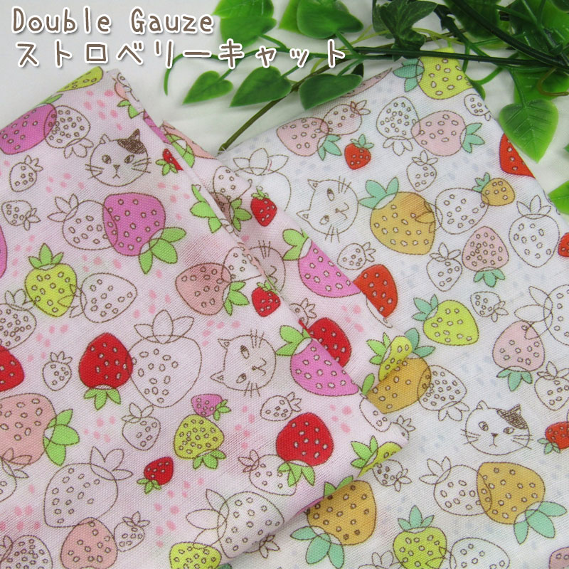苺/いちご/STRAWBERRY/猫/ネコ/cat/綿/生地/Wガーゼ