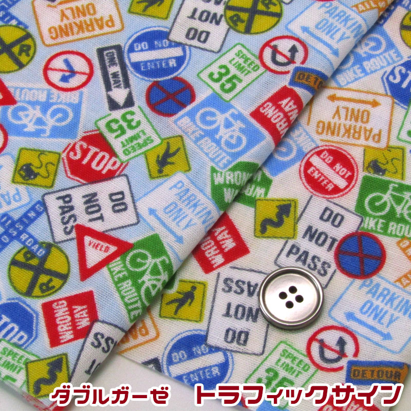 交通標識/道路標識/くるま/綿/生地/Wガーゼ
