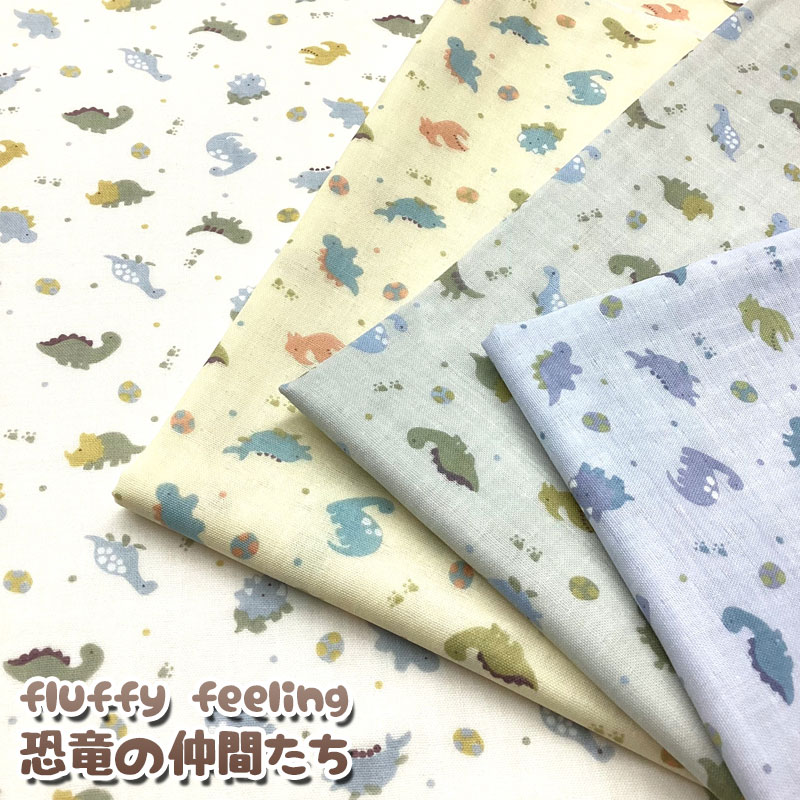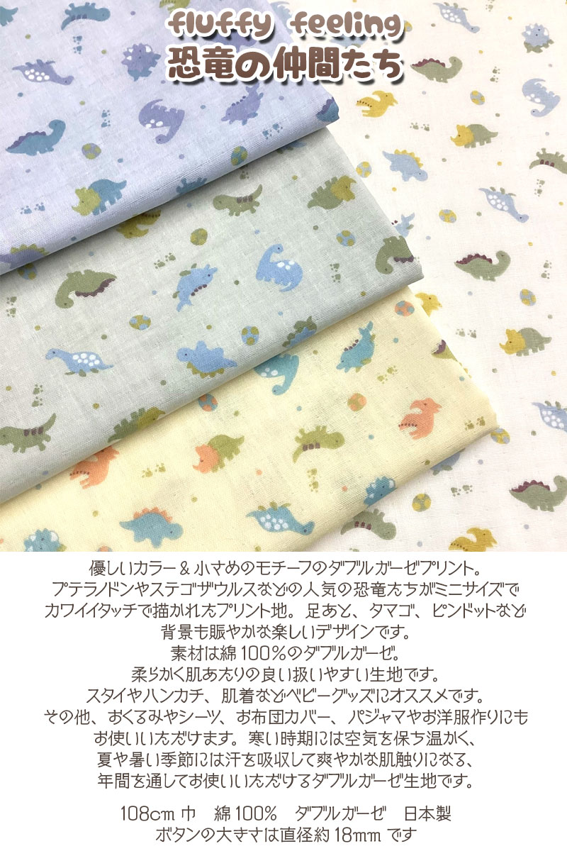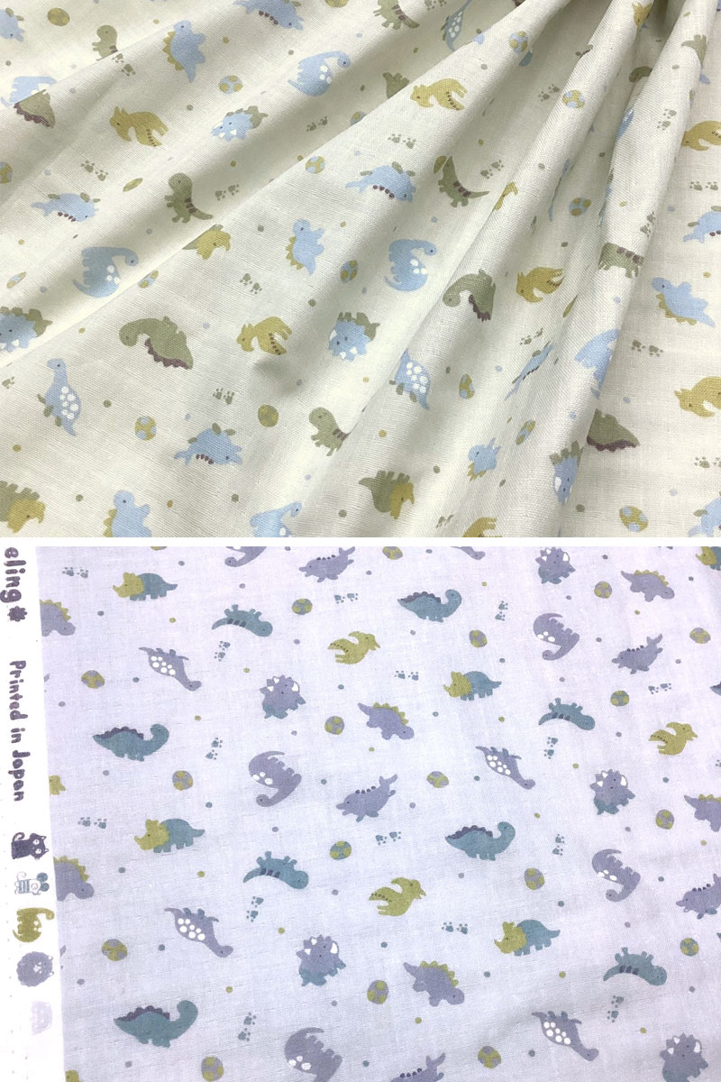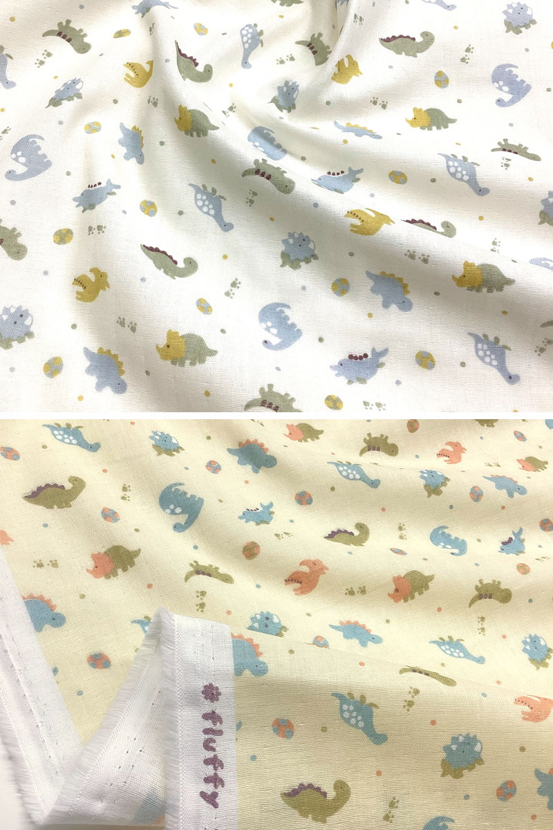Wガーゼ/ダブルガーゼ/コットン/綿/プリント/生地/布/キョウリュウ/ダイナソー/トリケラトプス/プテラノドン/ステゴサウルス/ベビー/スタイ/ハンカチ