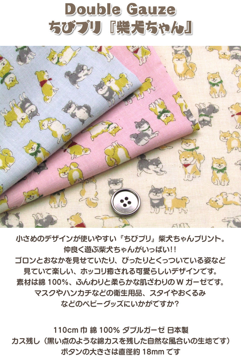 犬/イヌ/いぬ/しば犬/わんこ/ドッグ/DOG/アニマル/動物/Wガーゼ/コットン/綿/プリント/生地/布/ベビー/赤ちゃん/子ども/キッズ/ハンドメイド