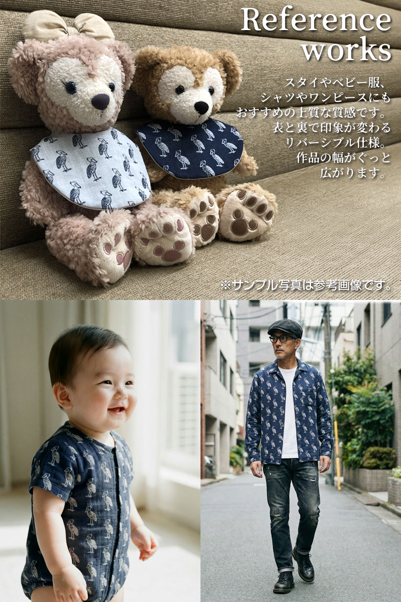 Wガーゼ/生地/布/綿/コットン/織物/リバーシブル/はしびろこう/鳥/トリ/動物/アニマル/赤ちゃん/パジャマ/おくるみ/スタイ/ハンカチ
