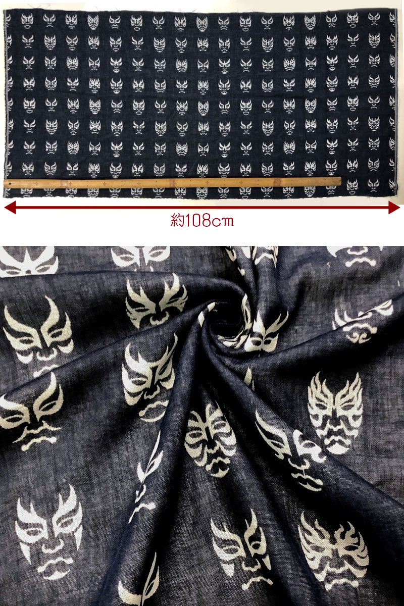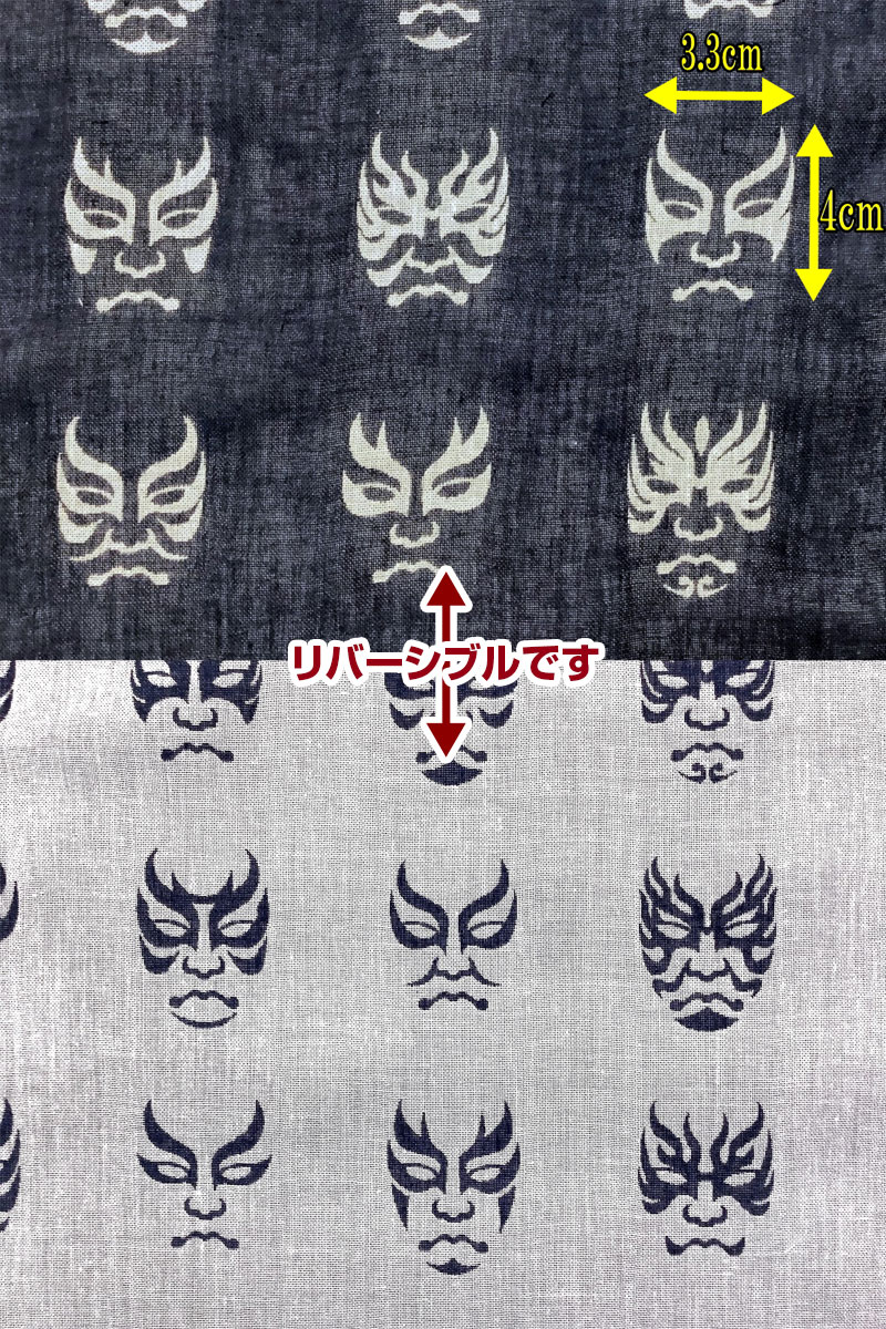 隈取りをしたカブキ役者の顔がズラリと並んだ和調デザインです。
