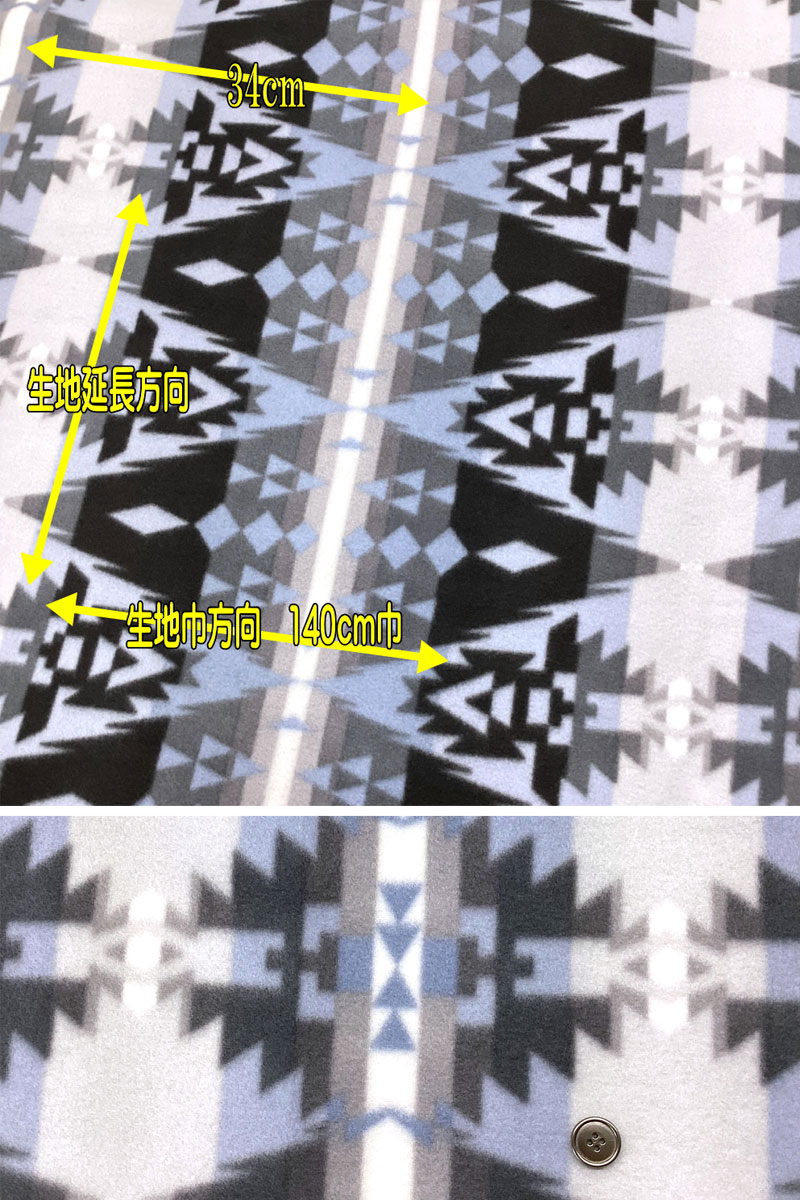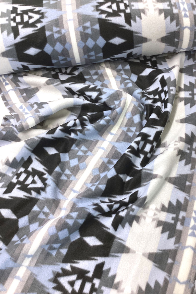 ふわふわフリース ネイティブ柄ブルーグレー(単位50cm)