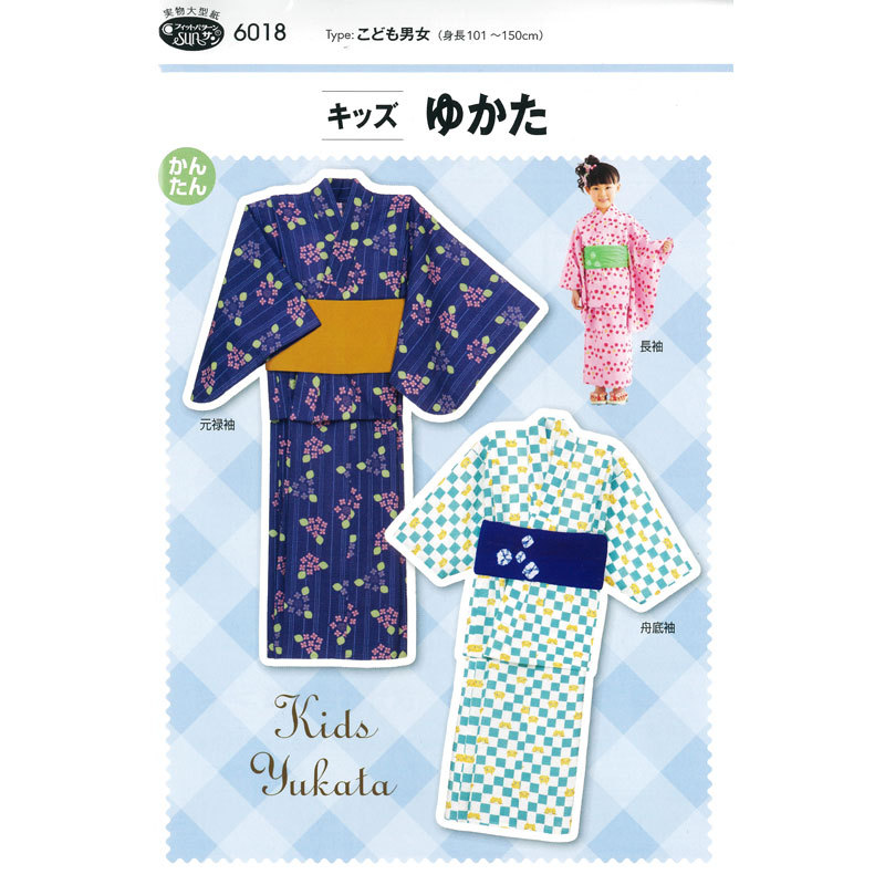 実物大・型紙 フィットパターン キッズゆかた(身長101〜150cm) こども/子ども/子供/男の子/女の子/サンプランニング