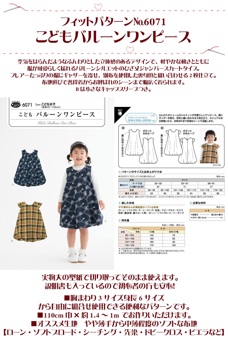 実物大・型紙 フィットパターン こどもバルーンワンピース