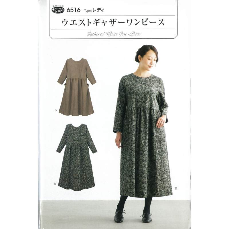 実物大・型紙 フィットパターン ウエストギャザーワンピース 大人/婦人/レディ/サンプランニング