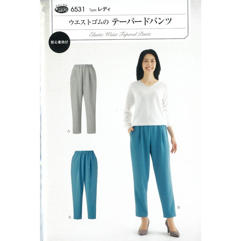 実物大・型紙 フィットパターン ウエストゴムのテーパードパンツ