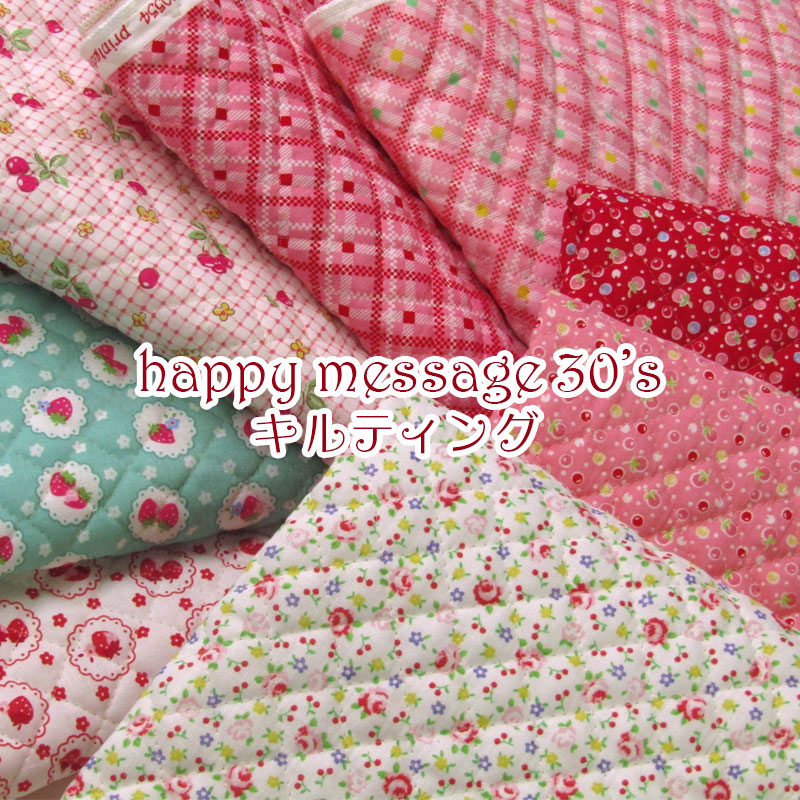 ハッピーメッセージ/かわいい/イチゴ/キャンディ/チェリー/ストロベリー/花/フラワー/プリント/生地/布/綿/コットン/入園入学/キルト