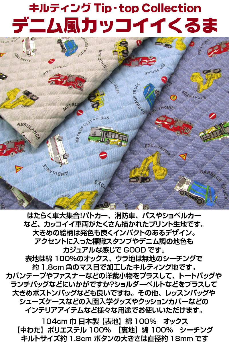 はたらくくるま/クルマ/自動車/パトカー/消防車/救急車/バス/トラック/かっこいい/入園入学/通園通学/男の子/BOY/キッズ/スクールグッズ/キルト/生地/プリント