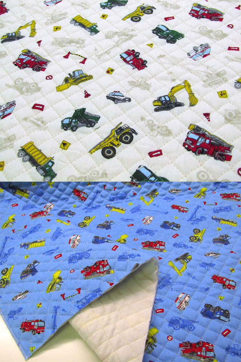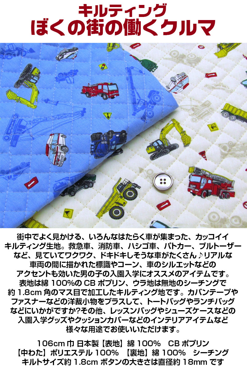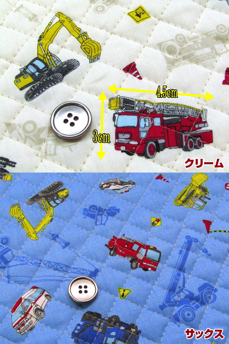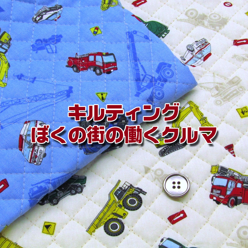 街中でよく見かける、いろんなはたらく車が集まった、カッコイイキルティング生地。