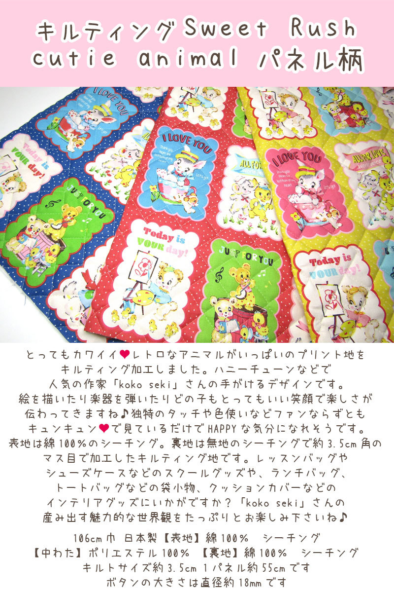 スウィートラッシュ/動物/レトロ/キュート/うさぎ/くま/ぞう/ハニーチューン/HoneyTune/生地/綿/コットン/プリント/キルト
