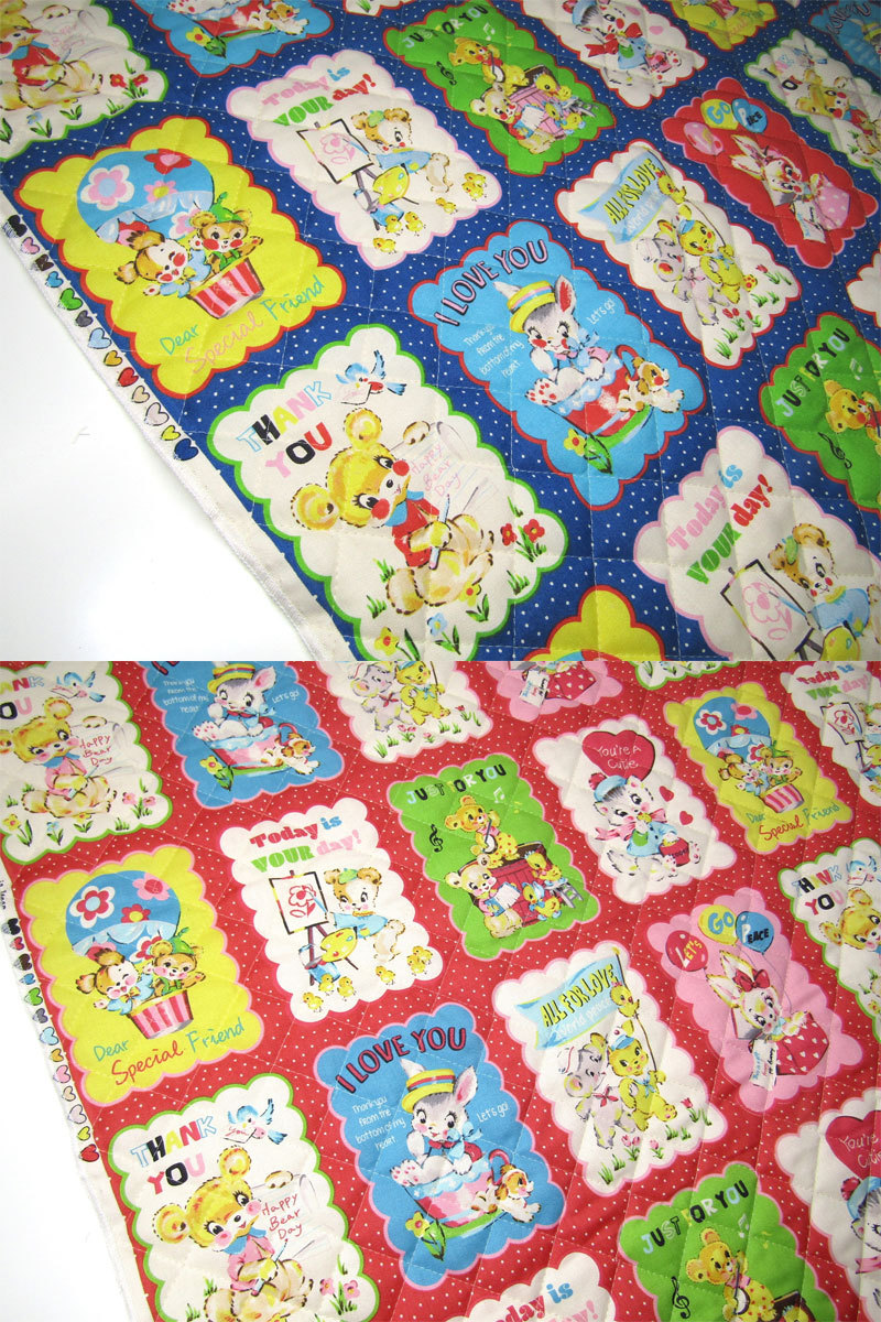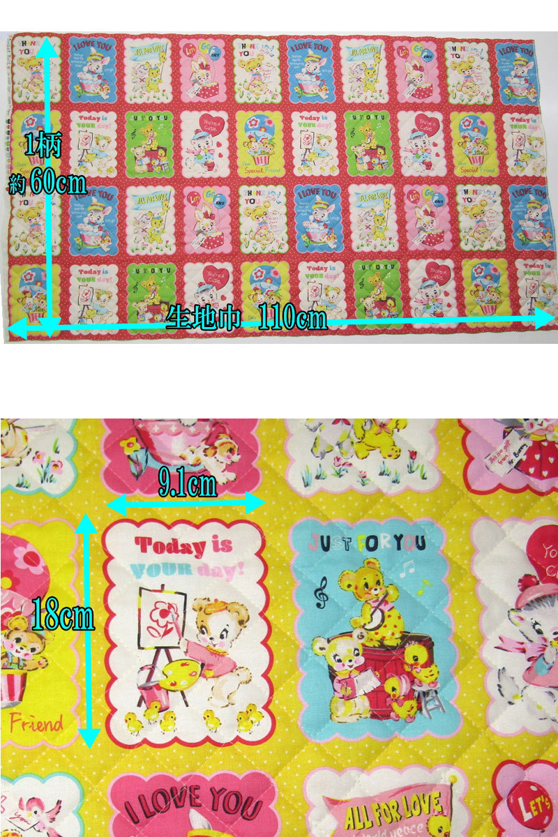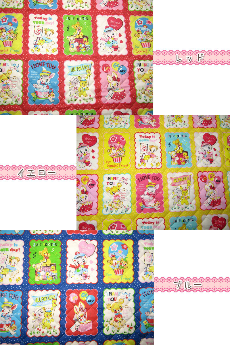 とってもカワイイレトロなアニマルがいっぱいのプリント地をキルティング加工しました。