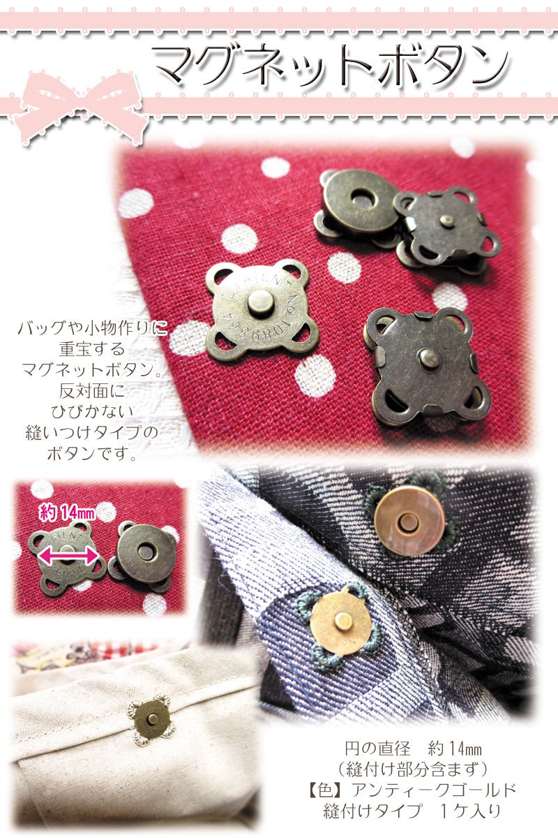 縫い付け型 マグネットボタン 14mm(1組) アンティークゴールド 14ミリ/マグネットホック/金属ボタン/磁石/ハンドメイドバッグ/