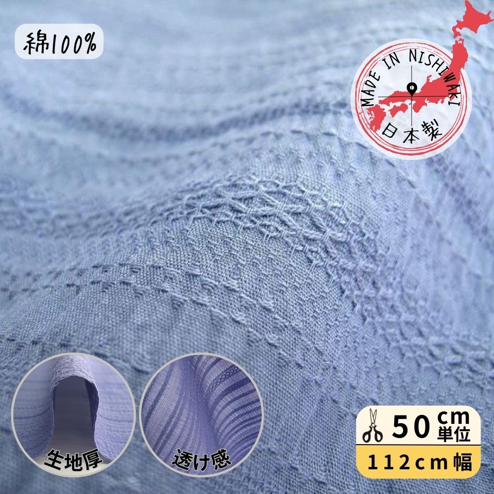 生地 布 日本製 播州織 国産 ハンドメイド 手芸 切り売り 夏 スカート ブラウス シャツ スカート ワンピース用 小物 透け感 コットン 綿 綿100% ブルー 青 はぎれ ハギレ