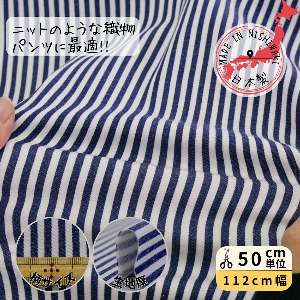 ニットのような織物 ストレッチ性あり 伸びる生地 112cm巾 日本製生地 アウター パンツ ストライプ 手芸 ハンドメイド 50cm単位 カットクロス はぎれ