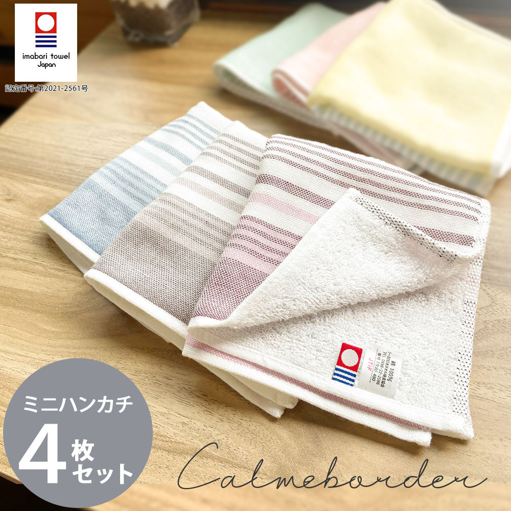 タオル ハンドタオル ミニハンカチ タオルハンカチ 4枚セット 日本製 今治タオル 国産 おしゃれ カームボーダー 高級 吸水力 薄手 高品質