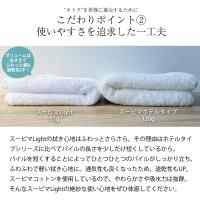 驚きの吸水力、クセになる柔らかさ。「コットンの王様」スーピマコットンを使用した高品質なホテルタイプタオルシリーズをよりリーズナブルに改良したスーピマLightシリーズ。絶妙な使い心地をぜひ体感してください。