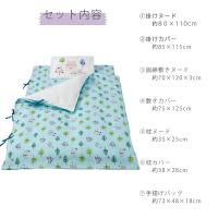 | 商品説明 | かわいいお昼寝布団7点セットになります。 手さげバッグが付いていて、持ち運びができるので、帰省時や旅行時のお昼寝や、保育園、幼稚園などに大活躍! 掛けカバー、敷きカバー、枕カバー、手さげバッグはご家庭でお洗濯できます。掛け布団、枕は、手洗いして下さい。固綿敷き布団は洗えません。 赤ちゃんの肌を優しく包み込む、お昼寝布団セットで爽やかな寝心地を♪ |