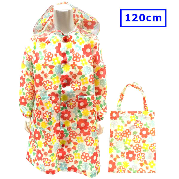 送料無料 KFキッズフォーレ 子供 女の子 レインコート カッパ 雨具 Lサイズ 120cm 適応身長/115〜125cm 収納バッグ付 花柄