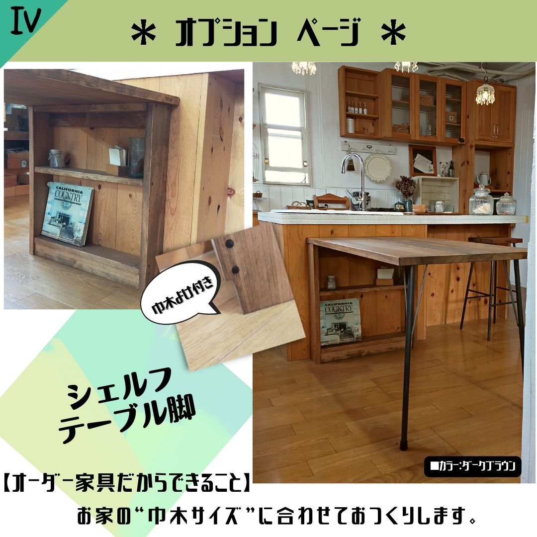 シェルフテーブル脚+鉄脚2本に変更します。