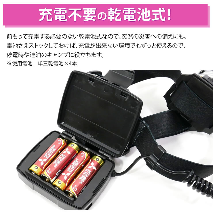 前もって充電する必要のない乾電池式なので、突然の災害への備えにも。