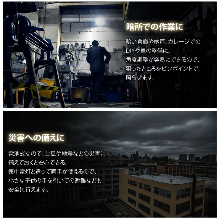 暗い倉庫や納戸、ガレージでのDIYや車の整備に。