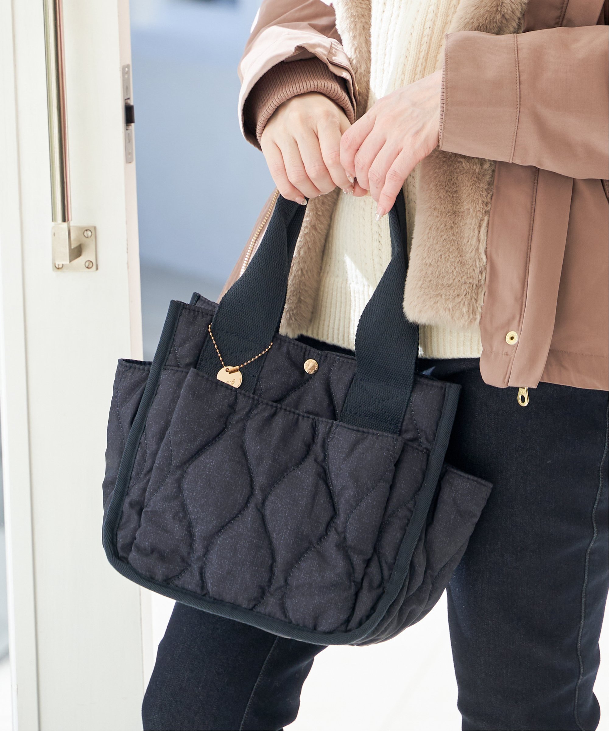 ひょうたん型のステッチを施した、ふんわり軽やかなキルティングトート。