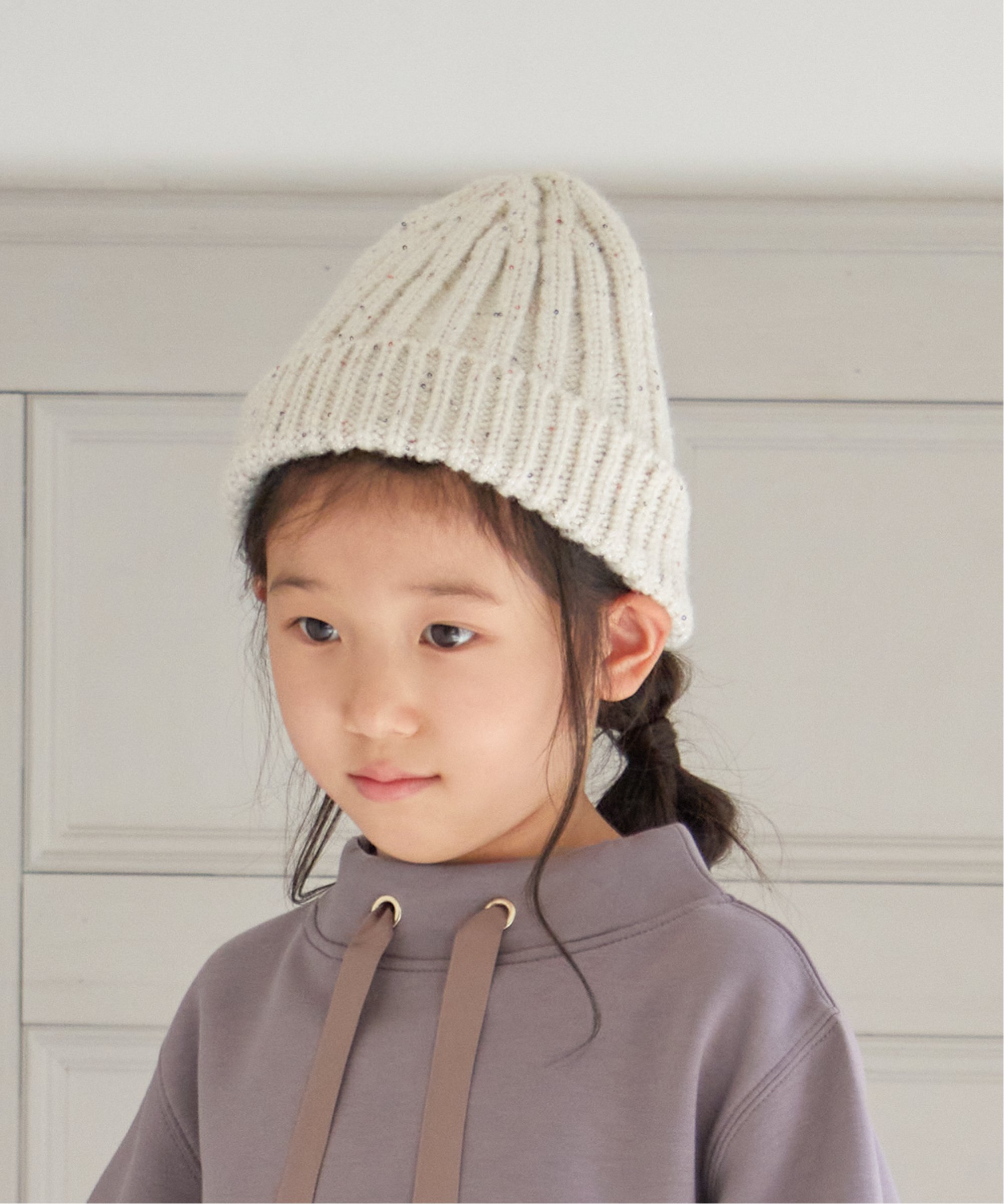 キラキラ光る「ラメ糸&スパンコール」をニット糸といっしょに編み込んだニットキャップです。