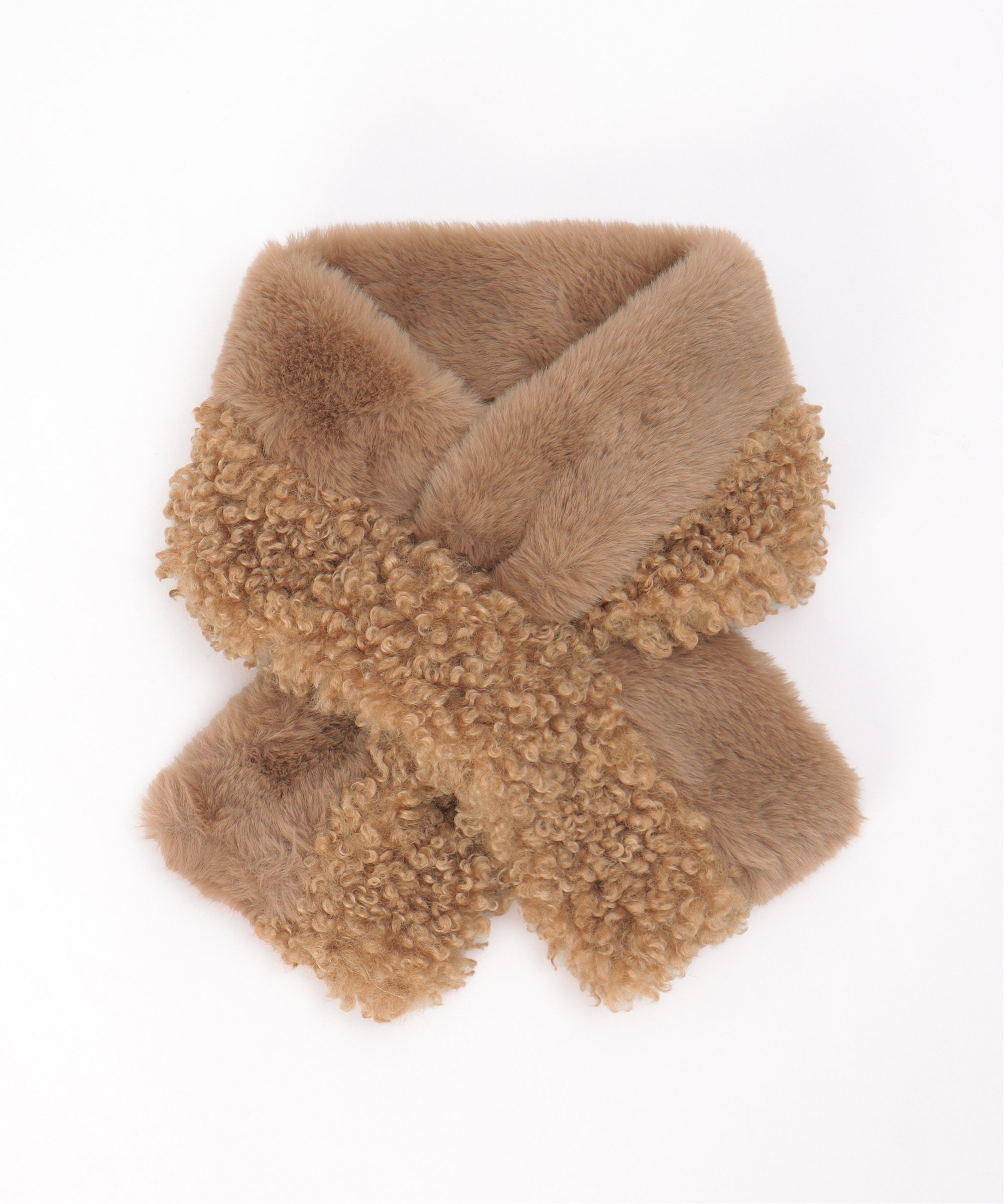 しっとりしたフェイクファーと、プードルのようなもこもこのフェイクファーを組み合わせたティペット。