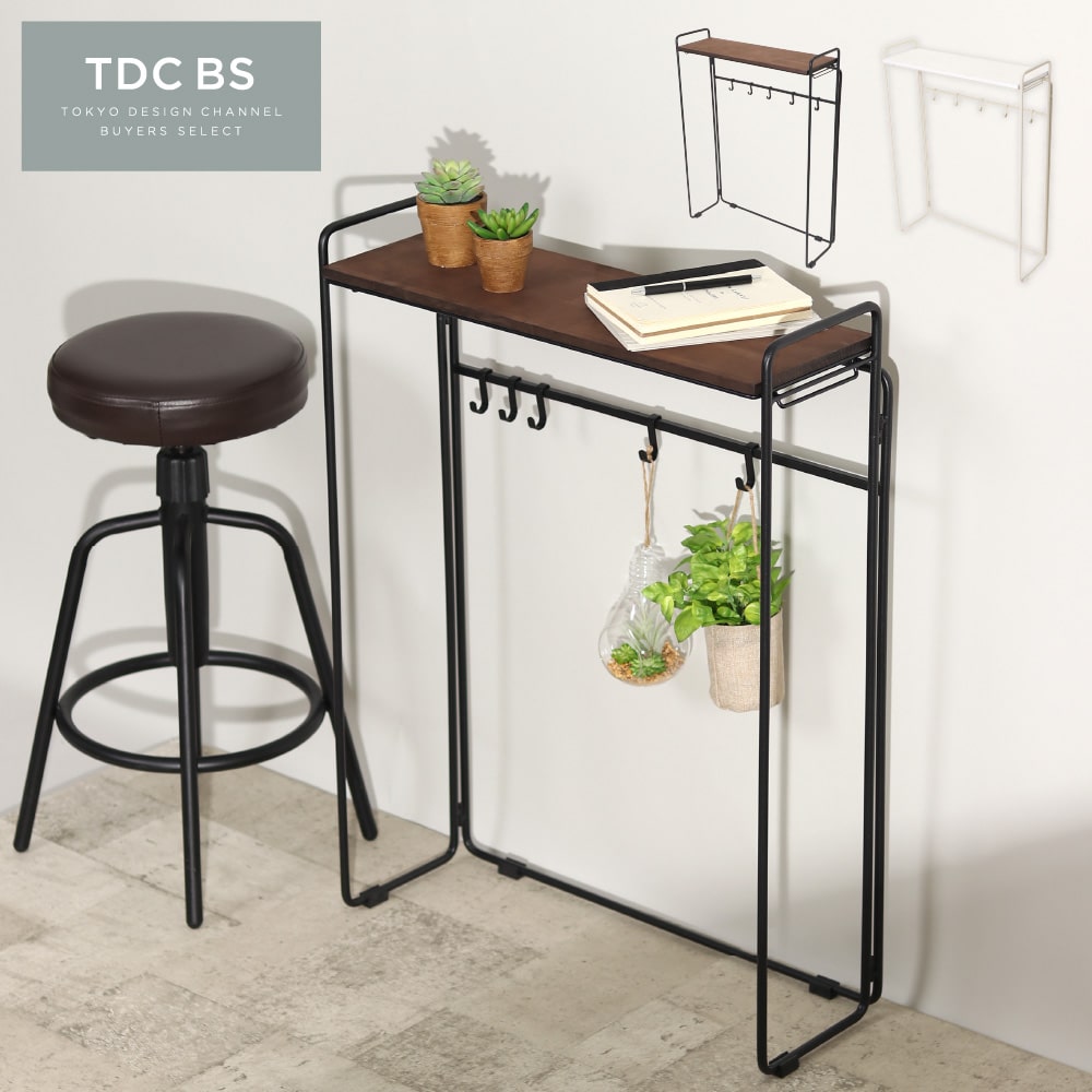 コンソールテーブル 折り畳み テーブル スリム エントランス サイドテーブル アイアン シンプル 白黒 ホワイト ブラック モノトーン