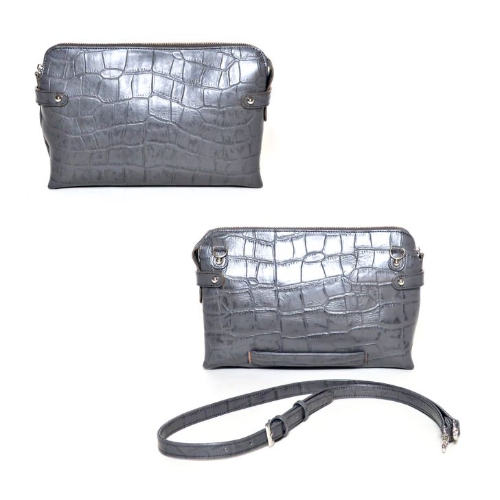 COXSWAIN クラッチバッグ 2ウェイ 本革 クロコ型押し メンズバッグ グレー 日本製 バッグ ショルダー クラッチ コックスウェイン CW1605