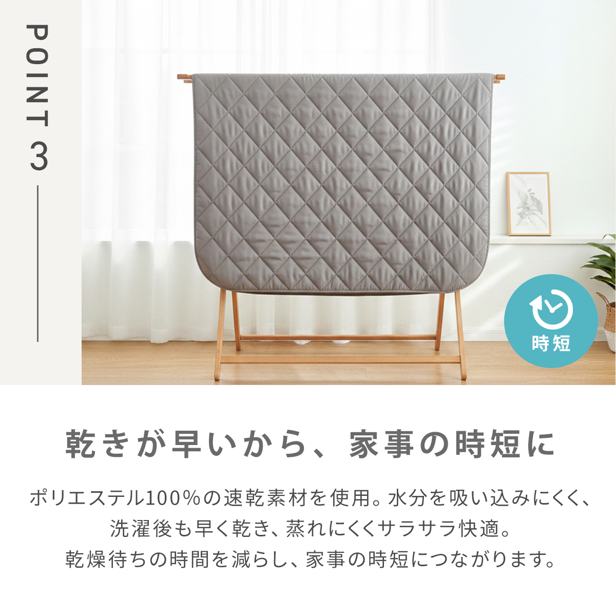【乾きが早く、部屋干しでも安心】
