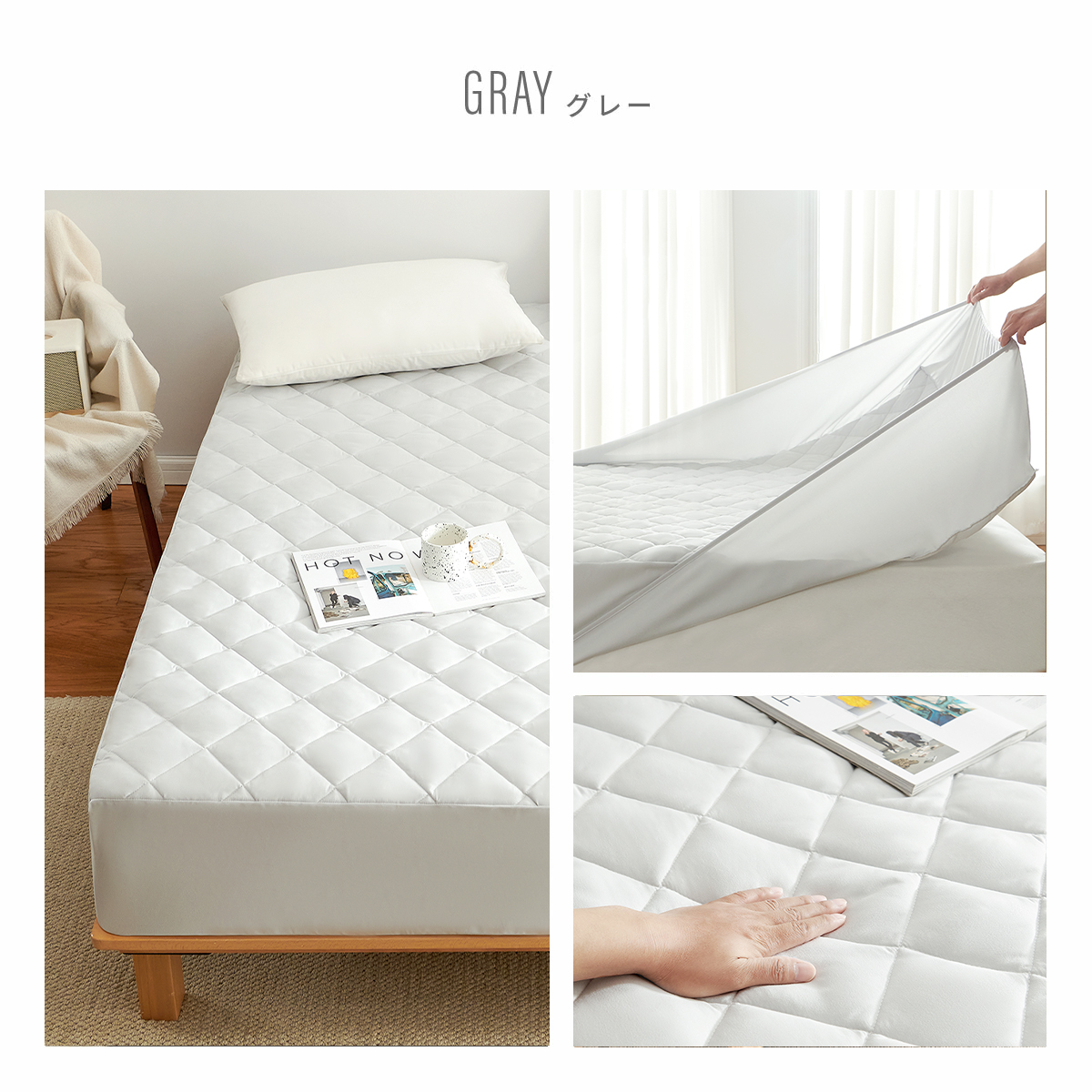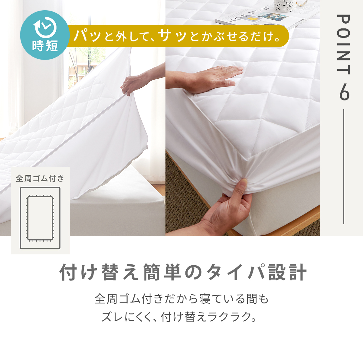 マットレスにすっぽり被せるだけの全周ゴム仕様。