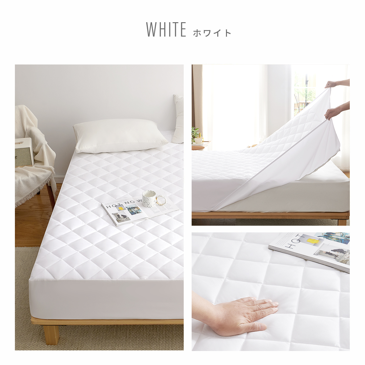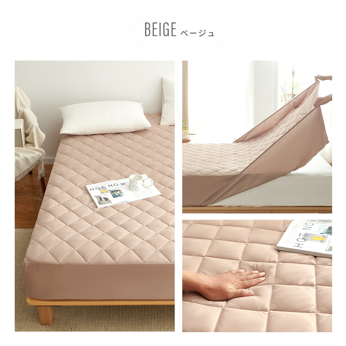 敷きパッドとボックスシーツがひとつになった「一体型」で、