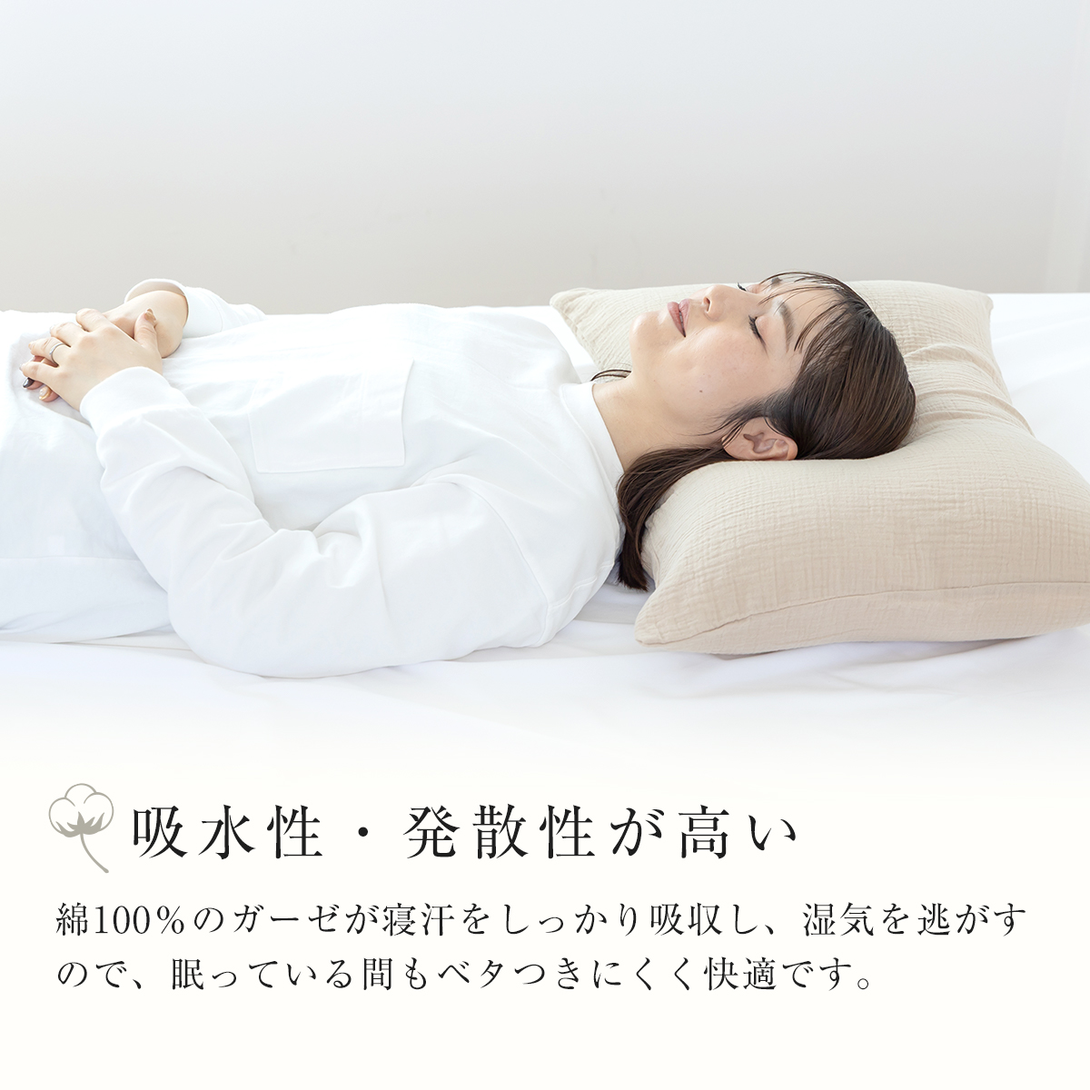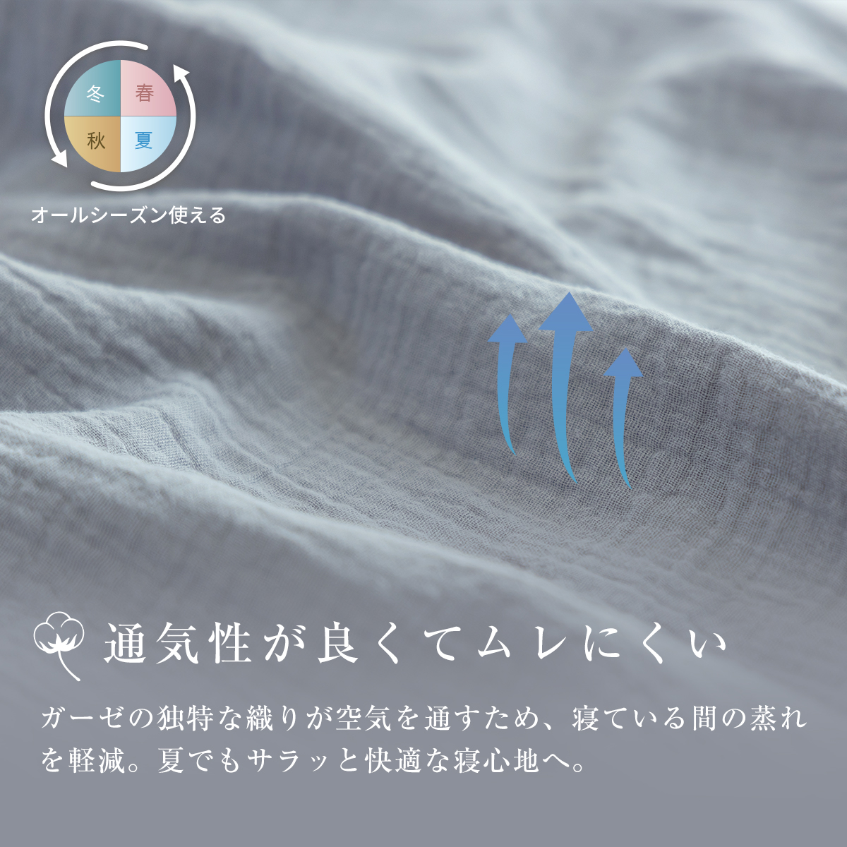 ガーゼ独特の織りが空気を通すため、寝ている間の蒸れを軽減。