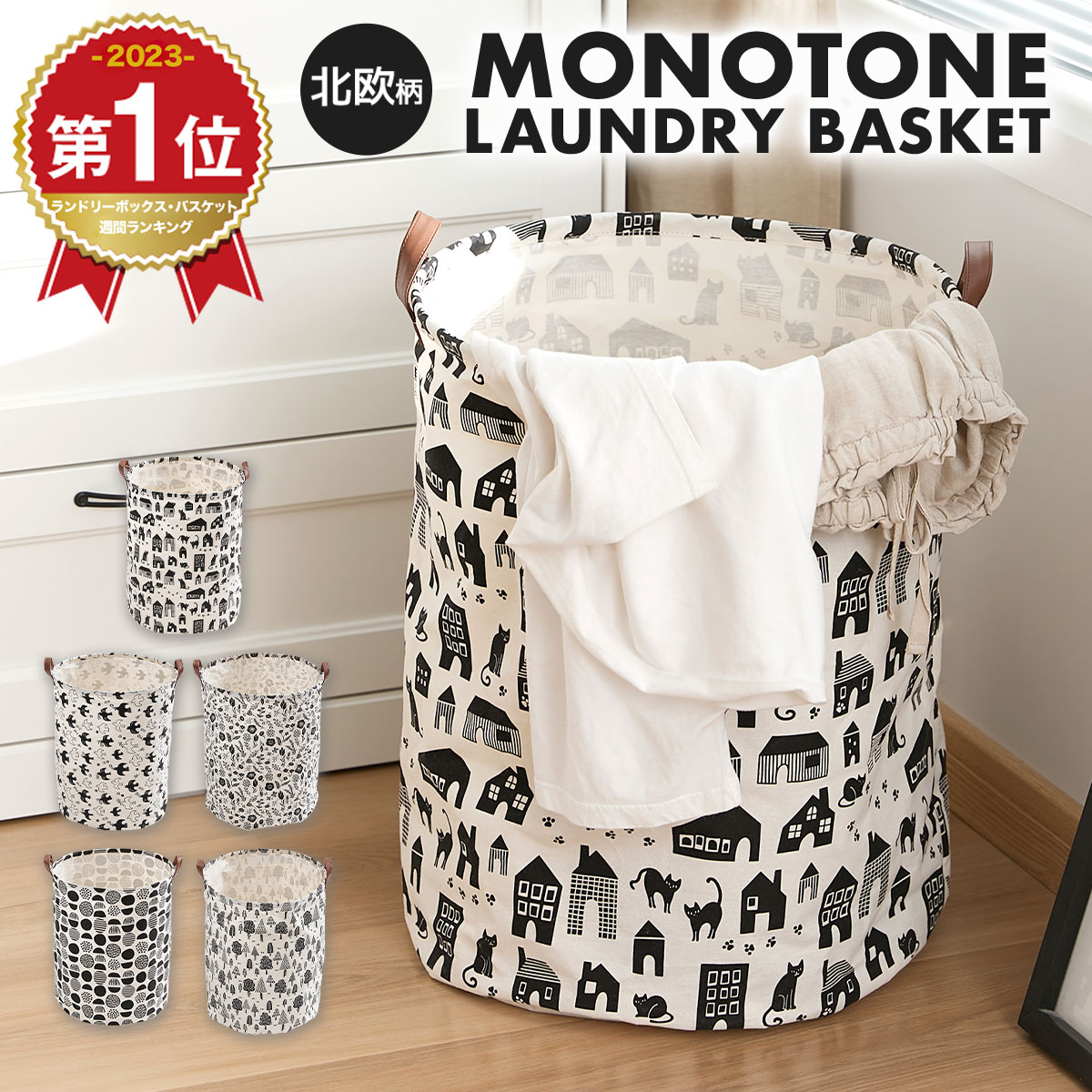 [ 北欧柄 ] モノトーン ランドリーボックス