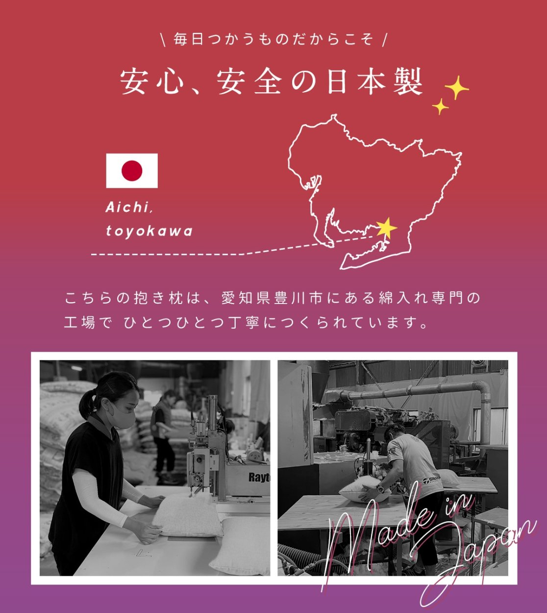 丁寧につくられた、安心・安全の日本製。
